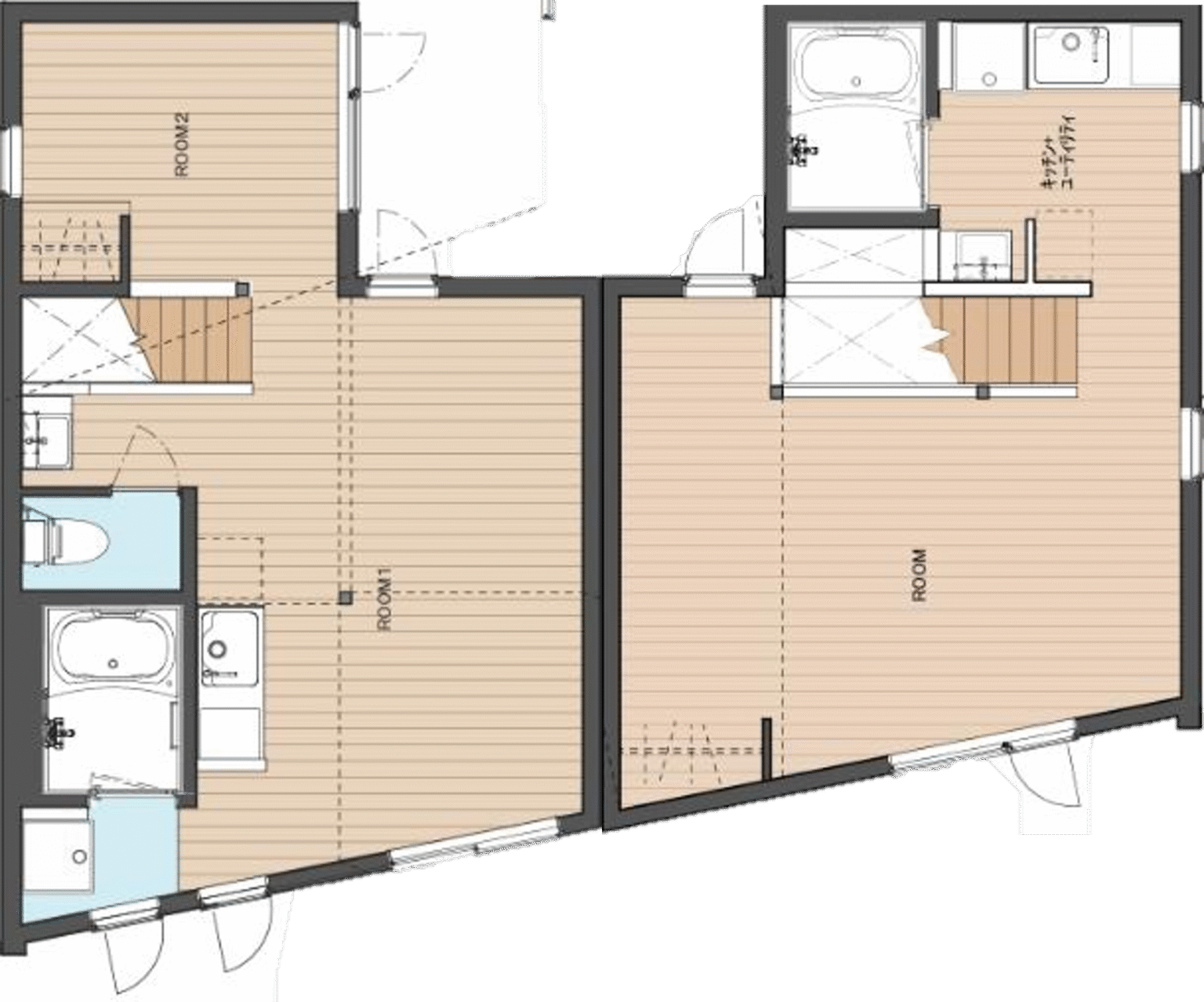 (2階:洋室2部屋(ROOM1+ROOM2、キッチン、バス・トイレ別))